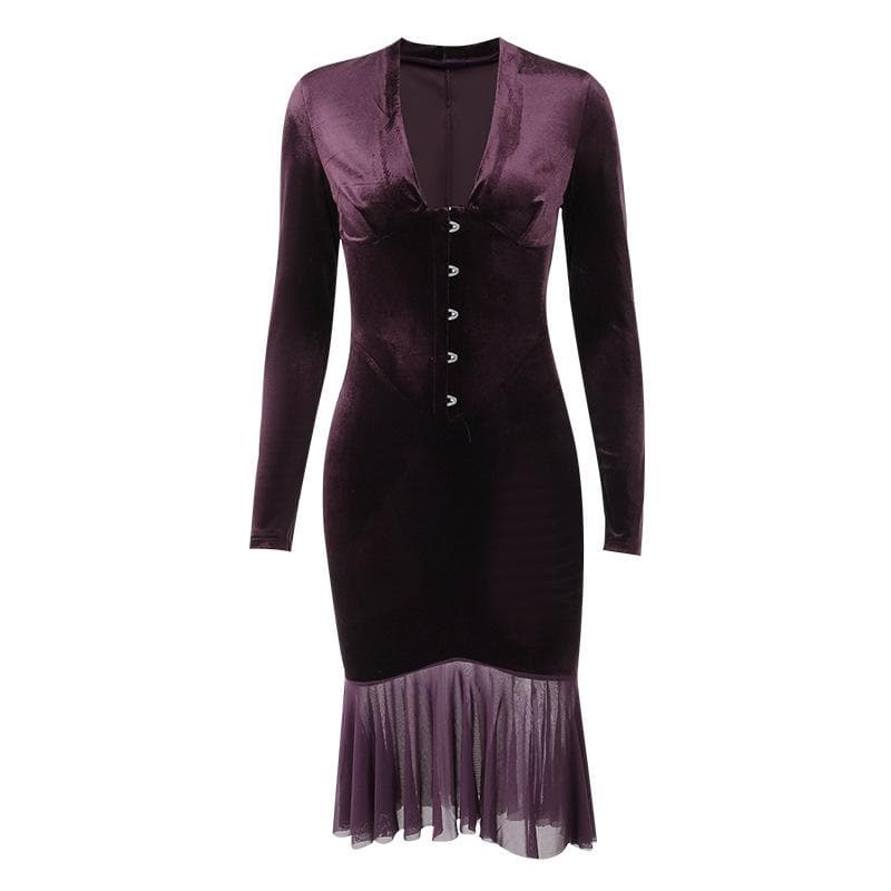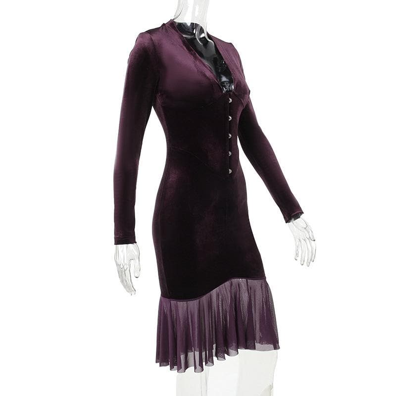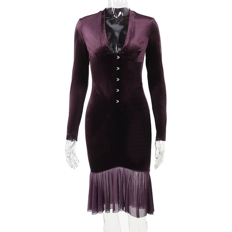 Velvet Button Ruffle V-neck Midi Dress: Y2k Outfit Ideas for Stylish Looks