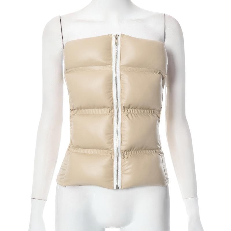 Y2K Zip Up PU Leather Tube Top a Winter Look High-quality product featuring prom dresses, spring outfits, business casual outfits and more. Modern design that fits the latest trends. Premium materials ensure durability and comfort. Order now for special offers! Product designed with attention to every detail. Suitable for all occasions and personal styles.