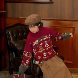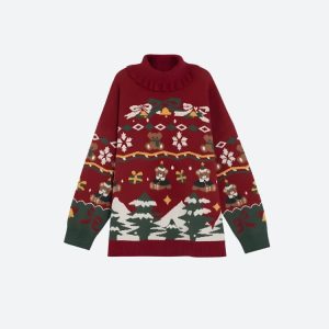 Cozy up in festive charm with the Christmas Tree Sweater, a holiday essential featuring a warm high neck and vibrant Christmas-inspired patterns. Its relaxed fit and soft knit ensure both comfort and style for all your seasonal gatherings.