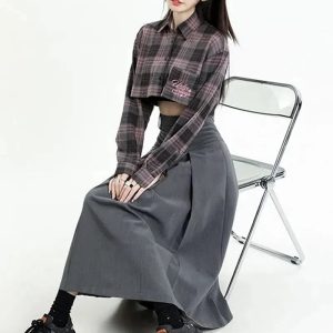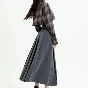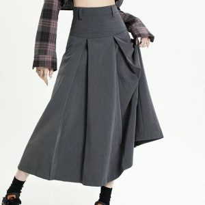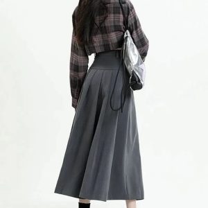 Channel the classic college girl vibe with this graceful A-line midi skirt. The understated gray hue complements its pleated design, and the high waistline accentuates your silhouette. An invisible zip fastening ensures a seamless look. Whether on-campus or off, this skirt exudes scholarly chic.