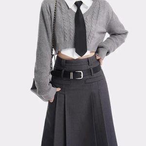 College Girl Pleated Midi Skirt