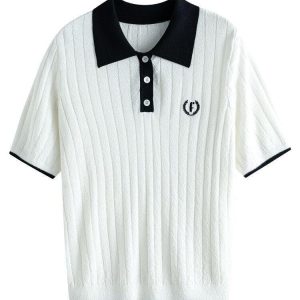 Upgrade your casual wardrobe with our College Style Short Sleeve Sweater. Made from a soft touch blend of acrylic and polyester, it features a classic polo collar and button front fastening. Available in timeless beige and crisp white, this versatile sweater is perfect for creating a stylish yet laid-back look. Pair it with jeans or chinos for a smart-casual outfit that effortlessly exudes collegiate charm. Ideal for everyday wear or campus adventures.