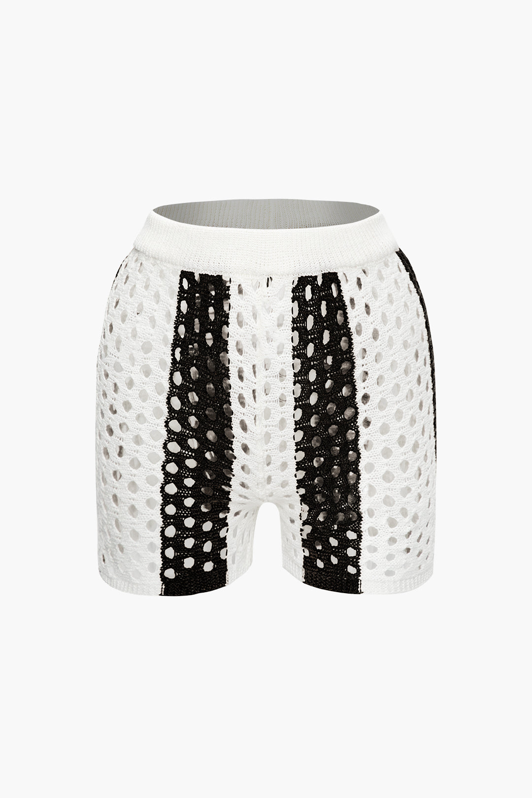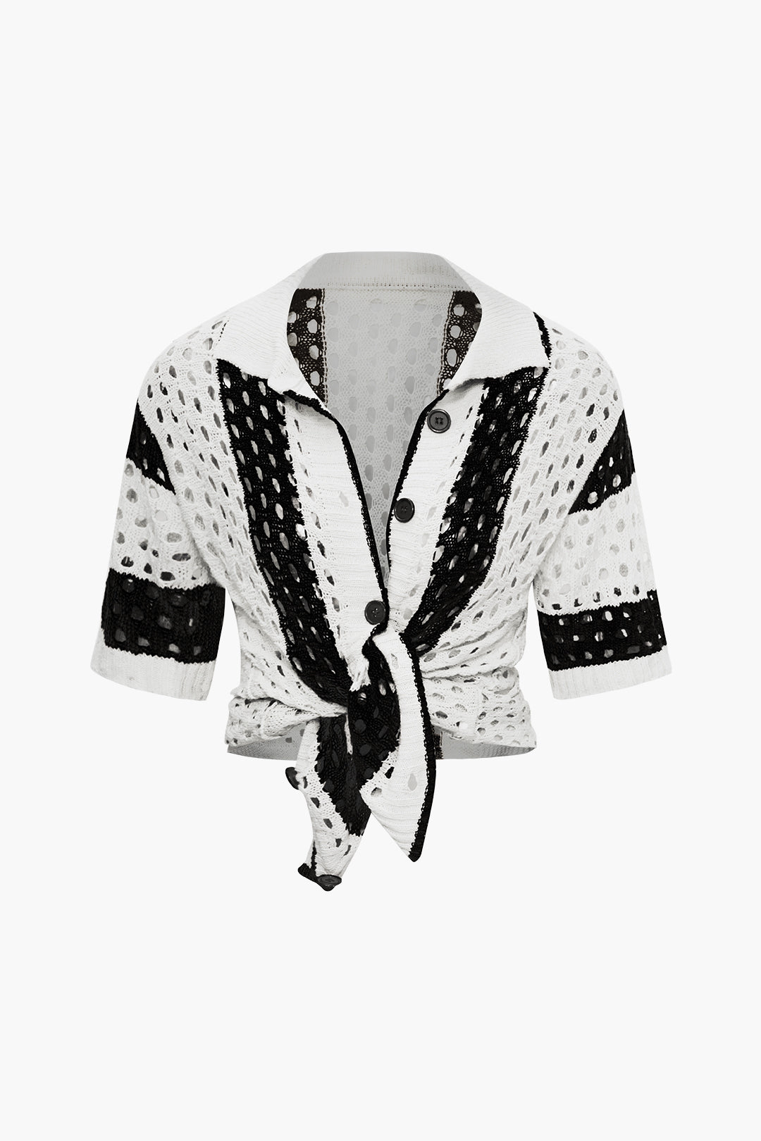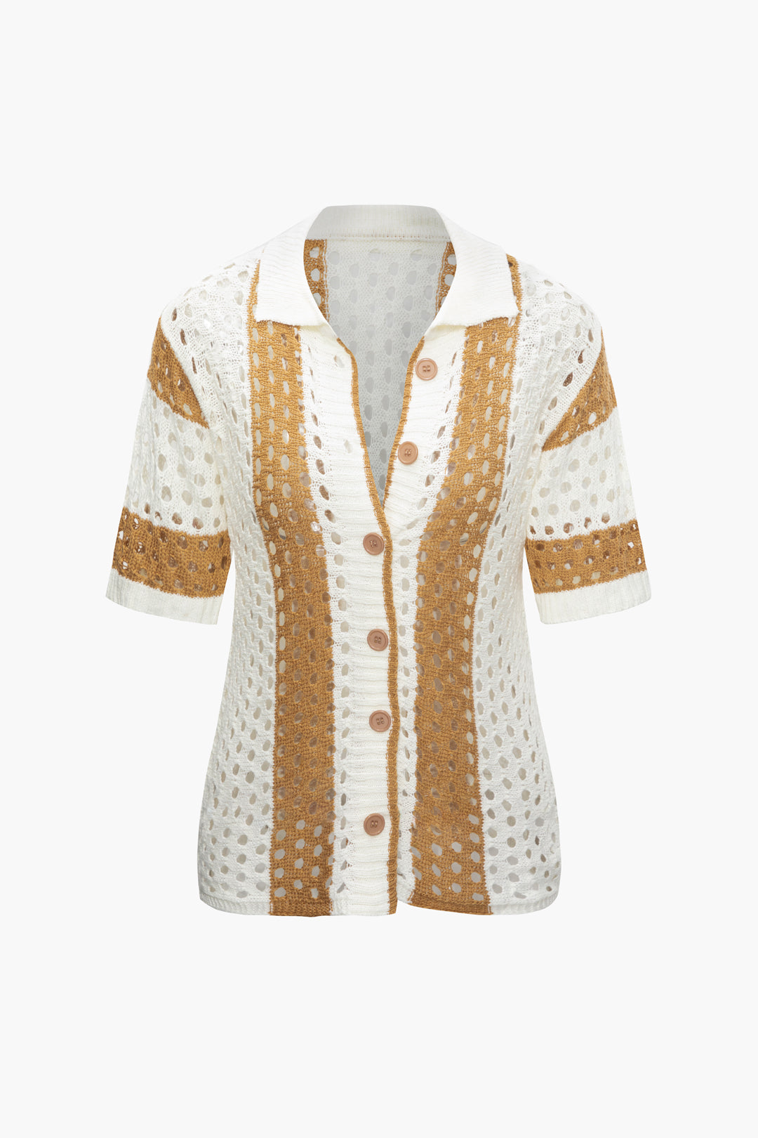 Y2k Comfy Outfit Ideas: Open Knit Button up Top and Shorts Set