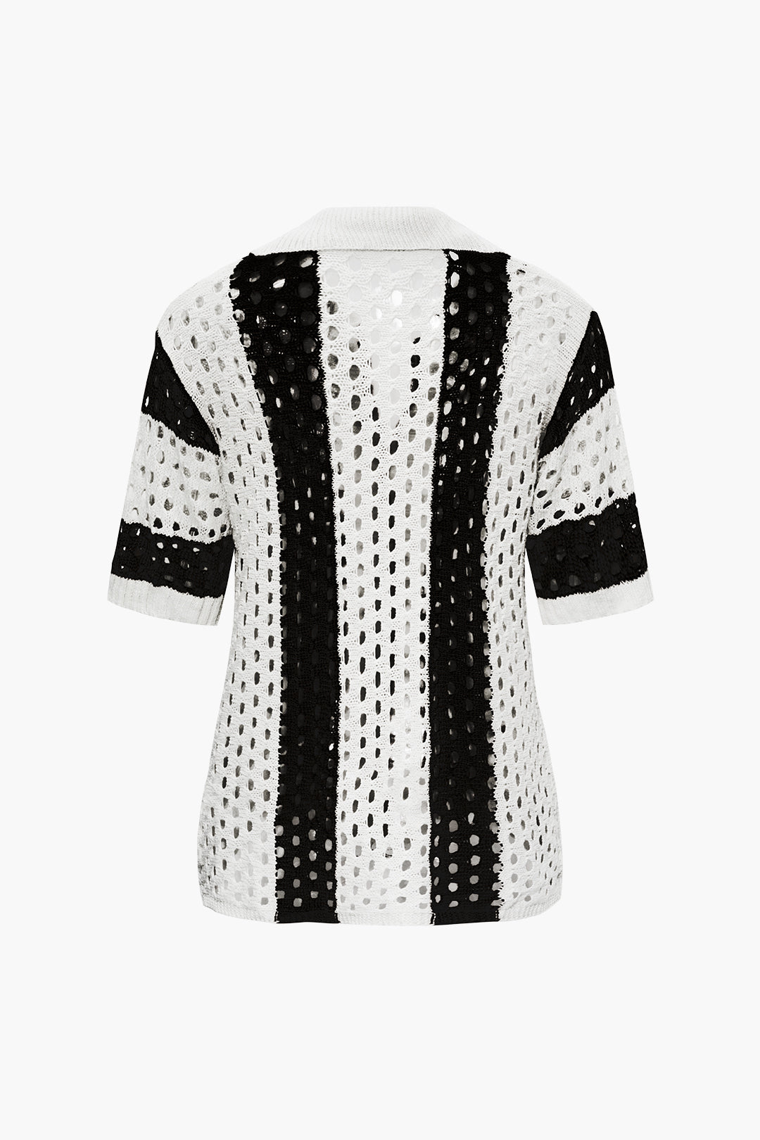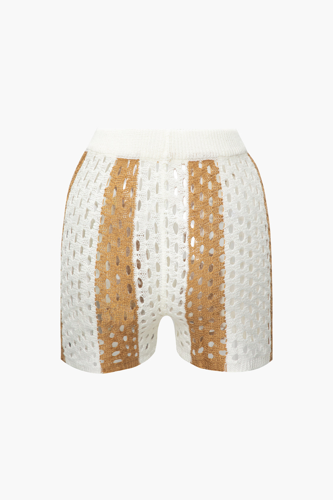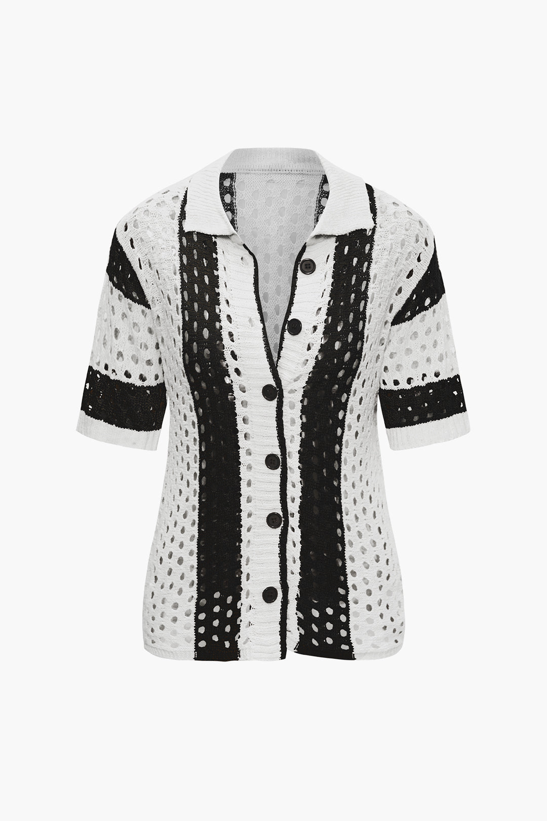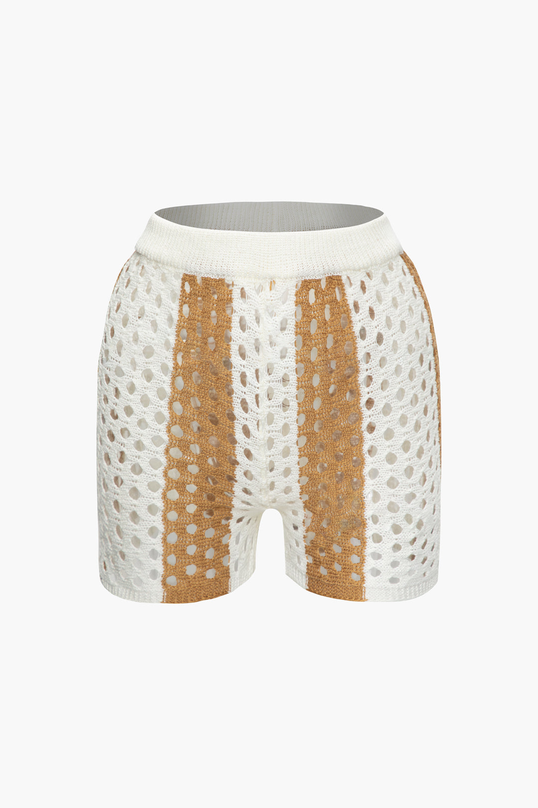Y2k Comfy Outfit Ideas: Open Knit Button up Top and Shorts Set