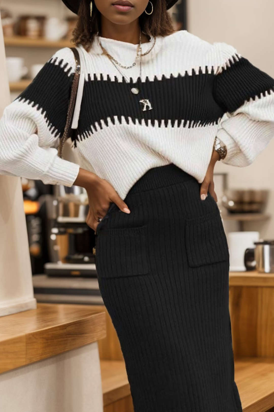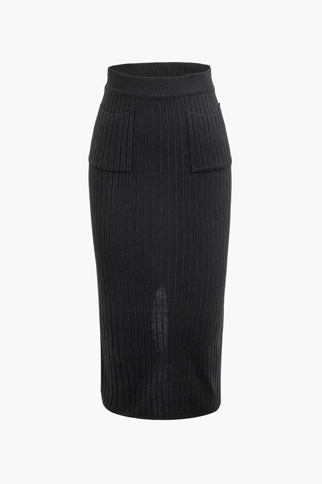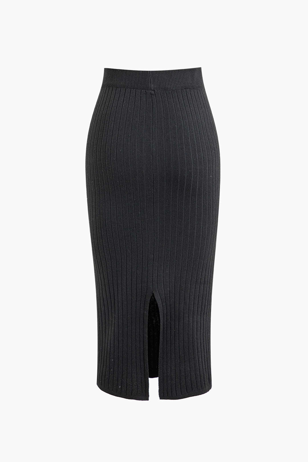 Ribbed Knit Long Sleeve Top and Midi Skirt Set: Stylish Y2k Outfit Ideas
