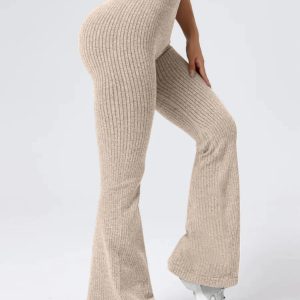 These Comfy Flare Knit Women Pants combine stretch, softness, and style for a flattering silhouette. Designed with a ribbed texture and flared hem, they hug the waist and hips comfortably while adding length to your legs. Perfect for lounging, casual wear, or pairing with crop tops for an effortlessly chic look.