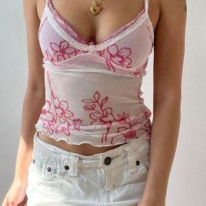 Coquette Lace Strap Floral Mesh Top