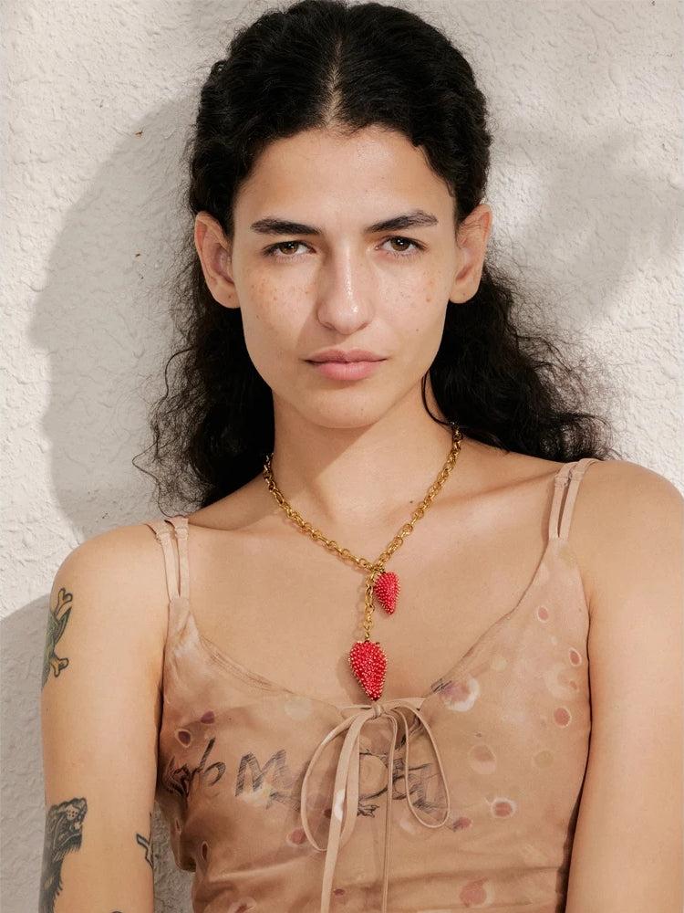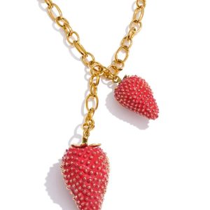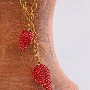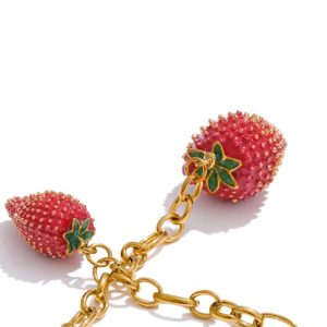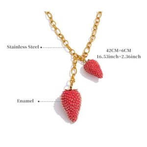 This Strawberry Necklace is a playful blend of sweet and bold. With gold-toned chain links and two dangling beaded strawberries, it brings a quirky charm to your look. Whether you’re styling a summer fit or adding fun to everyday outfits, this piece adds just the right amount of fruity flair.