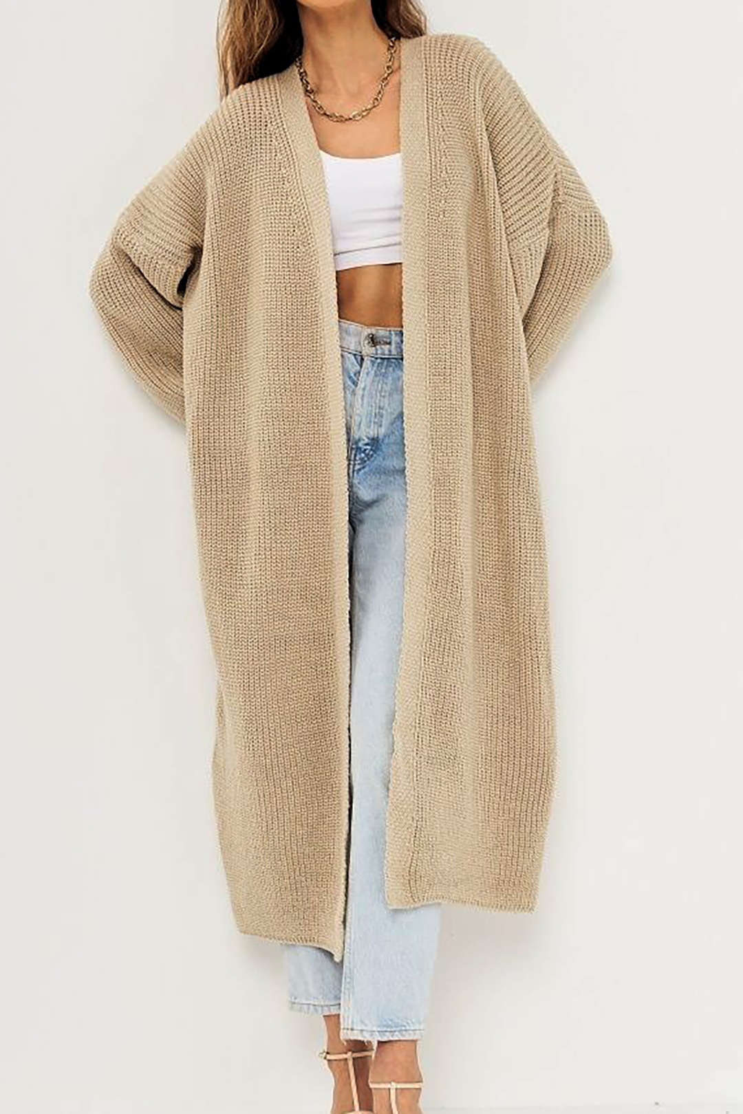 Shop now and redefine your summer style with our Y2K Open Front Drop Shoulder Long Sleeve Knit Coat!