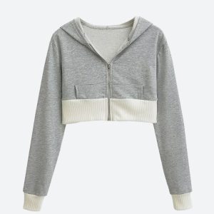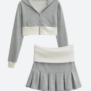 Rock a sporty vibe with this cropped hoodie and mini skirt set. The ribbed paneling and comfy cotton blend keep your look cool for casual days or weekend fun.