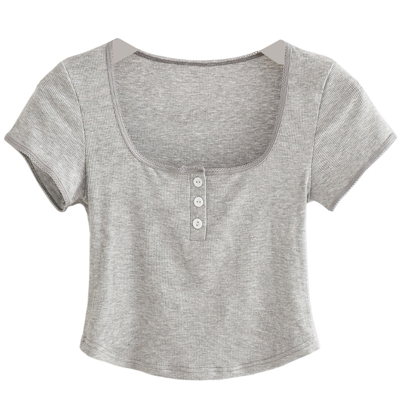 Cropped Slim Fit Short Sleeve T- shirt Women European, Solid, Midriff Baring Top High-quality product featuring prom dresses, spring outfits, business casual outfits and more. Modern design that fits the latest trends. Premium materials ensure durability and comfort. Order now for special offers! Product designed with attention to every detail. Suitable for all occasions and personal styles.