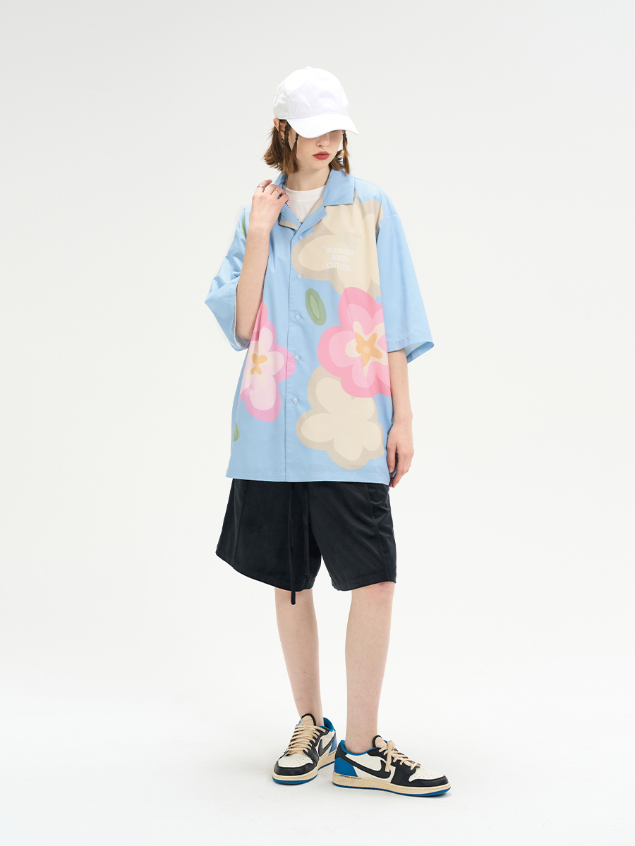 Cuban Collar Short Sleeve Shirt Cartoon Flower Print | Harsh, Cruel pired | Y2K High-quality product featuring prom dresses, spring outfits, business casual outfits and more. Modern design that fits the latest trends. Premium materials ensure durability and comfort. Order now for special offers! Product designed with attention to every detail. Suitable for all occasions and personal styles.