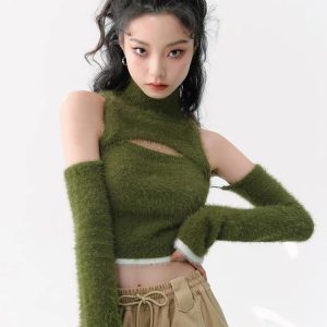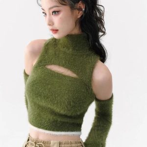 Stay stylish and warm with this fluffy crop top, featuring soft touch material and an intriguing cut-out design. The contrast color design at the hem and cuffs, along with the turtle neck, make it a fashionable top for a cool, cozy winter look.