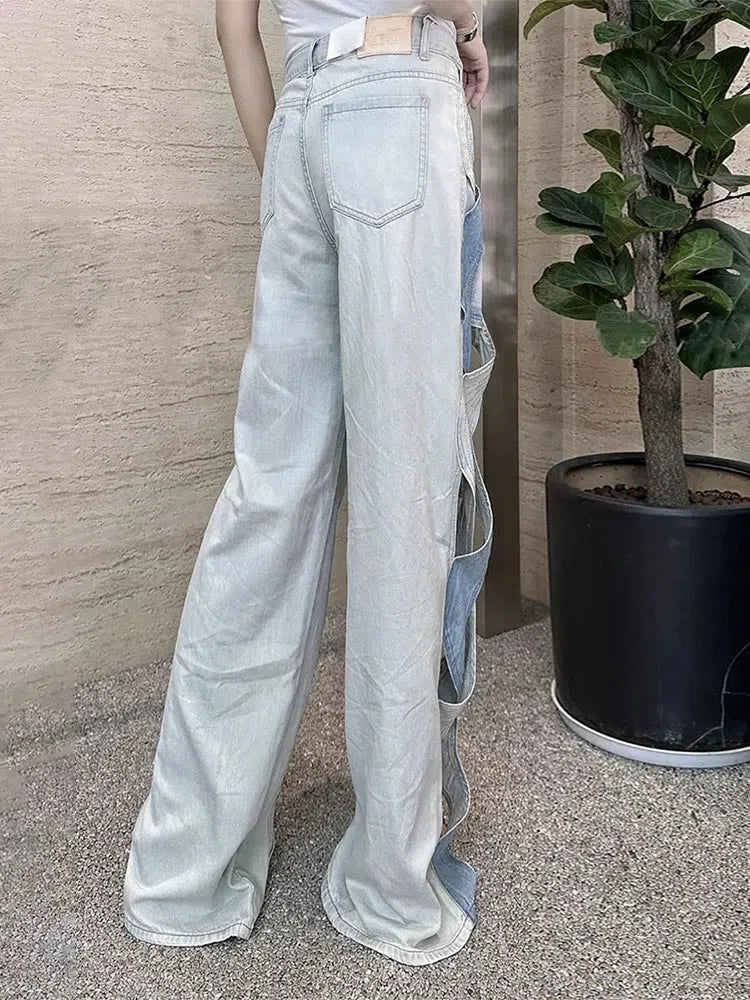 Make a bold fashion statement with these denim jeans. Featuring a unique design with stylish cut-outs and contrasting patches, these jeans offer a trendy and edgy look. The high-waisted fit and quality denim fabric ensure comfort and style, perfect for creating standout outfits.