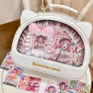 Adorable cat-shaped ita crossbody bag, perfect for daily use and easy to match with any outfit. The large size fits two 20 cm dolls, while the small size fits two 10 cm dolls.