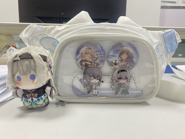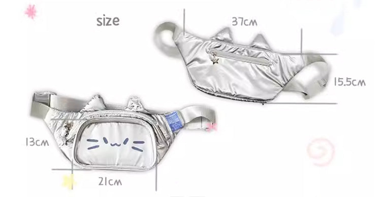 This super cute cat-shaped chest bag features a transparent display window, perfect for showcasing your favorite badges, cards, or plushies. A stylish and practical choice for daily commuting!