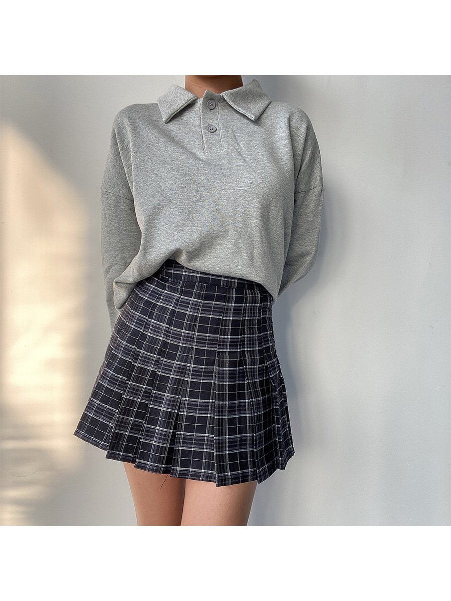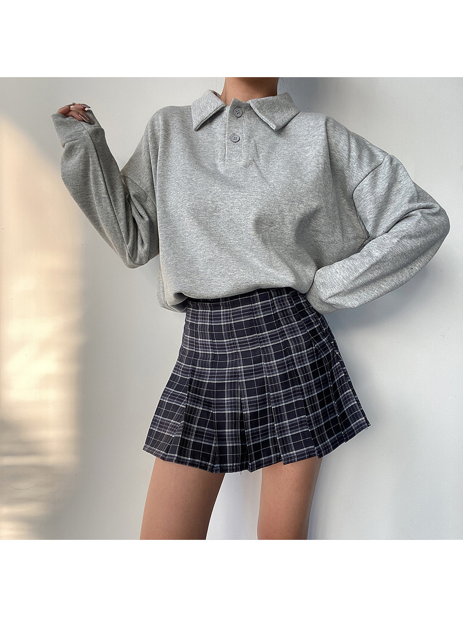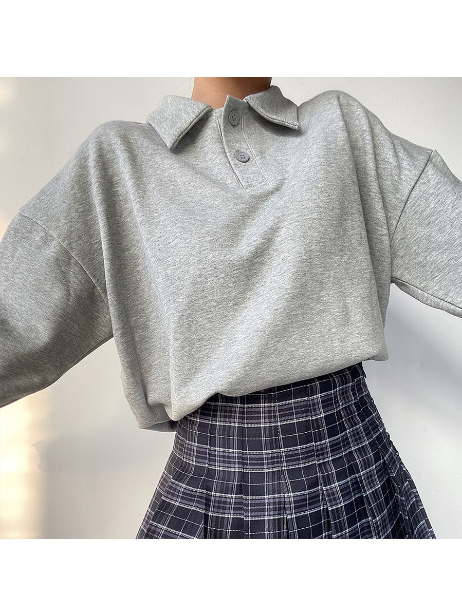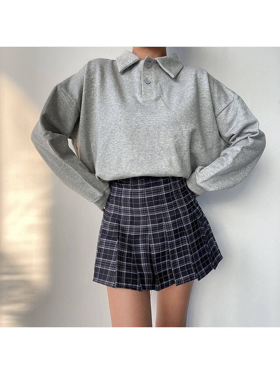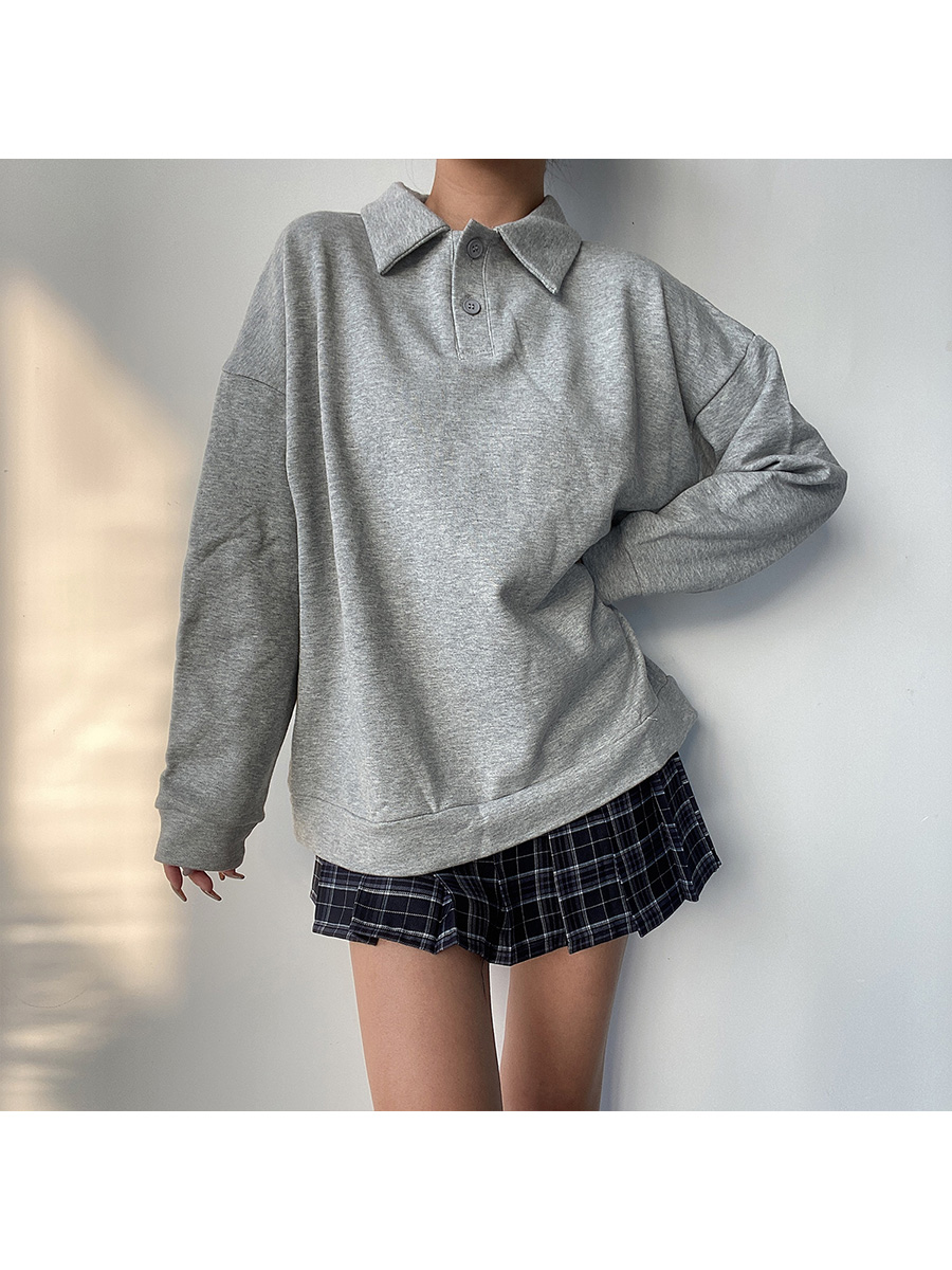Cute Girl Polo Collar Loose Fit Long Sleeve Top Bf Solid Pul – Outfit Ideas