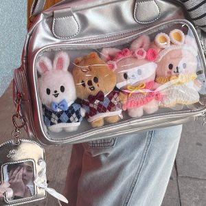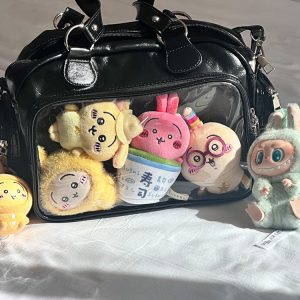 This adorable ita bag is perfect for JK-style fans and plushie collectors! The soft PU leather and lightweight build make it comfortable to carry all day, whether you’re heading to school, conventions, or hanging out with friends. The spacious display window lets you show off your favorite pins or dolls in style!