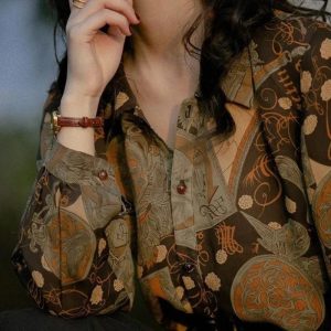 Immerse yourself in the enigmatic allure of the dark academia aesthetic with this artistic figures shirt. Elegantly tailored with a classic collar and long sleeves, its button-front fastening provides a refined touch. Perfect for a day at the library, bookstore, or a cozy date, it’s the embodiment of intellectual sophistication.