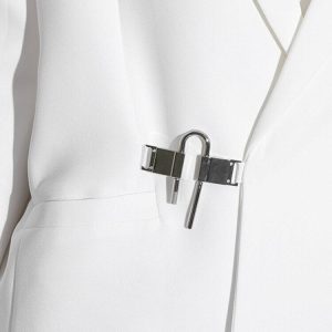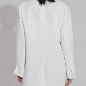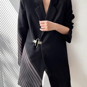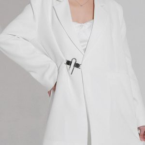 Taking cues from the Dark Academia aesthetic, this black blazer exudes an intellectual charm, while its white counterpart beautifully encapsulates the Light Academia aesthetic. Featuring a unique buckle fastening at the front, twin hip pockets, and intriguing splits at the sleeves, it’s crafted from a comfortable cotton-polyester blend. Its lapel collar adds a touch of formal sophistication, making it a versatile piece for a coffee shop study session or an intriguing seminar. Perfectly paired with a pleated skirt or tailored trousers for a thoughtful, scholarly look.