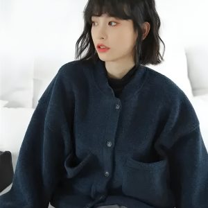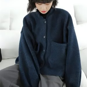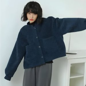 This long-sleeve knitted cardigan is a quintessential piece for dark academia enthusiasts. With two large pockets for practicality, it exudes a cozy, vintage grandma style. Perfect for winter layering, it adds a touch of timeless elegance to any outfit.