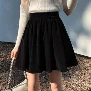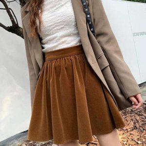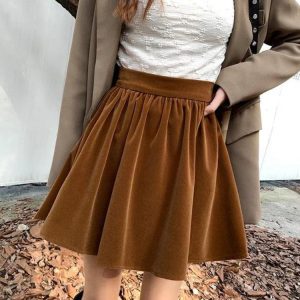 This high-waisted velvet mini skirt is a fall & dark academia vibe essential. The A-line cut and elasticated waistband ensure a comfortable fit, while the soft touch material adds a cozy feel. It’s a stylish choice for the office, casual outings, or staying warm in the fall and winter months.