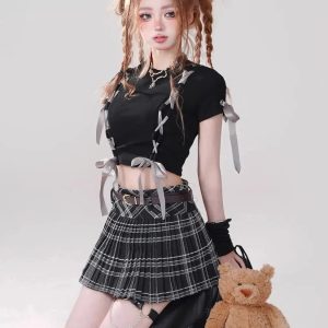 Hold the edgy side of chic with our crop top. This daring piece features a bold black hue with intricate lace-up details that add a touch of rebellious style. Made from high-quality fabric, it promises both comfort and durability, perfect for those who love to stand out from the crowd.