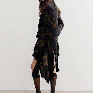 Bold and edgy, this Dark Floral Asymmetric Blazer combines a unique cut with a moody floral print. Ideal for layering, it’s designed to elevate your look, whether you’re going for casual or chic, making a striking impression in any setting.