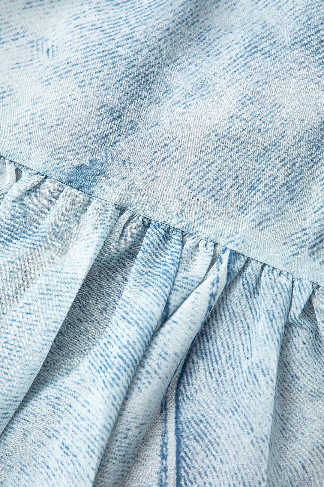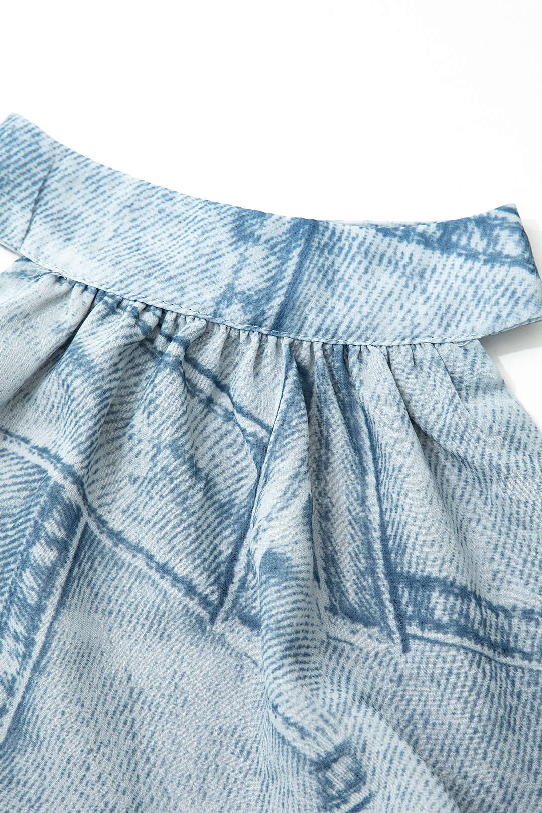 Step into the spotlight with our Denim Pattern Halter Knot Pleated Mini Dress, a stunning piece that perfectly embodies the Y2K aesthetic and is a must-have for your summer wardrobe. This dress combines the playful spirit of 2000s fashion with modern flair, making it ideal for everything from casual outings to summer parties.