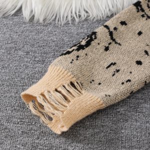 This distressed pullover sweater features a unique galaxy-inspired knit combined with torn edges for a worn-in, alternative look. The soft, medium-weight fabric keeps it comfortable, while the relaxed silhouette makes it easy to style for daily streetwear outfits. Ribbed trims balance the rough details, creating a clean overall shape. With its cosmic pattern and distressed finish, it fits naturally into modern men’s fashion and adds character to any men style wardrobe. Ideal for pairing with denim, cargos, or layered looks for casual, expressive men clothing.