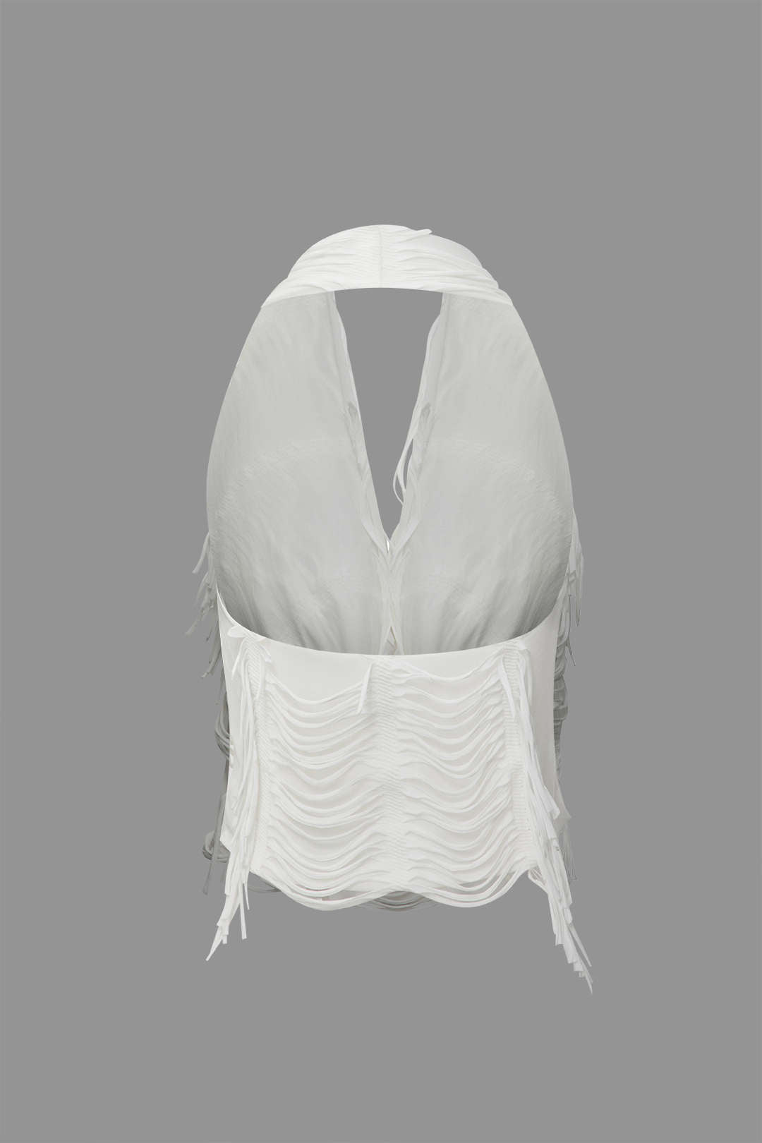 Ready to turn heads this summer? Shop now and redefine your style with our Distressed Y2K Halter Cami Top & Asymmetrical Mini Skirt Set! Your perfect Y2K fit awaits!