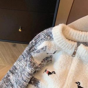 Stay warm and stylish in this knitted cardigan featuring charming dog embroidery at the front. The soft touch material makes it ideal for cozy, comfortable wear during winter or for relaxing at home.