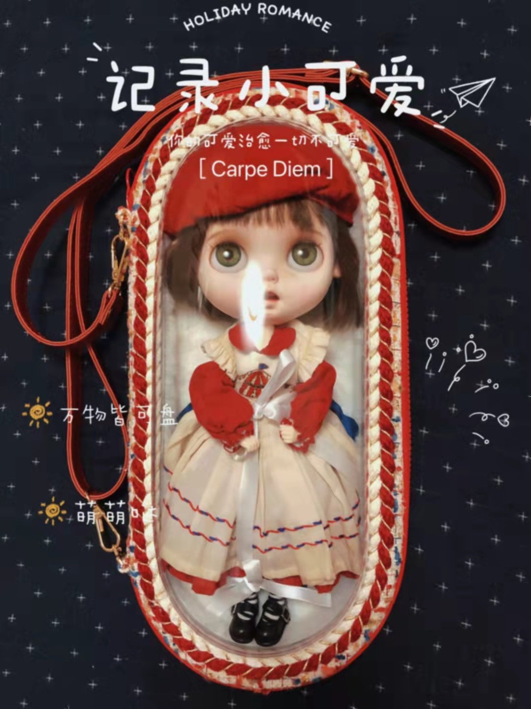 A travel doll bag is for protecting your favorihilte doll we you are walking.