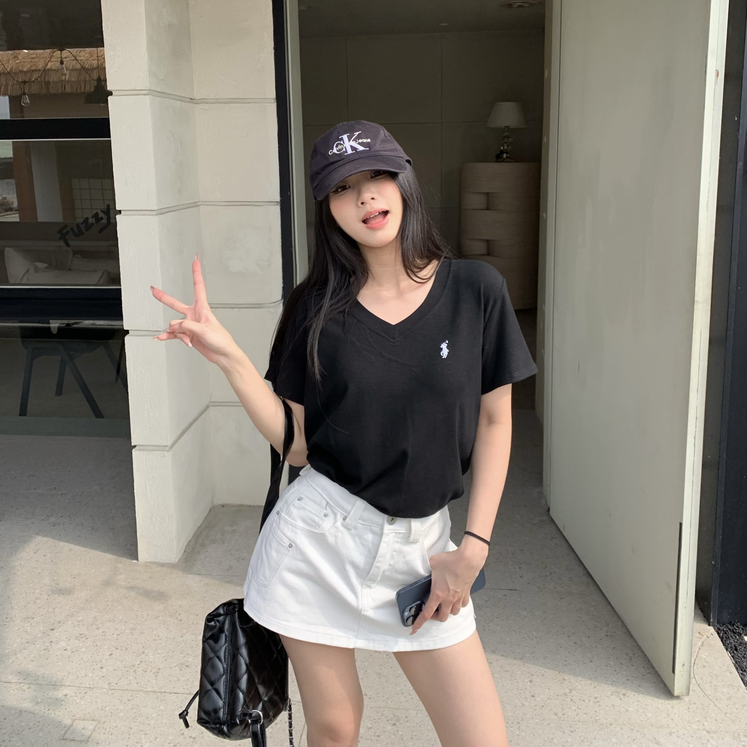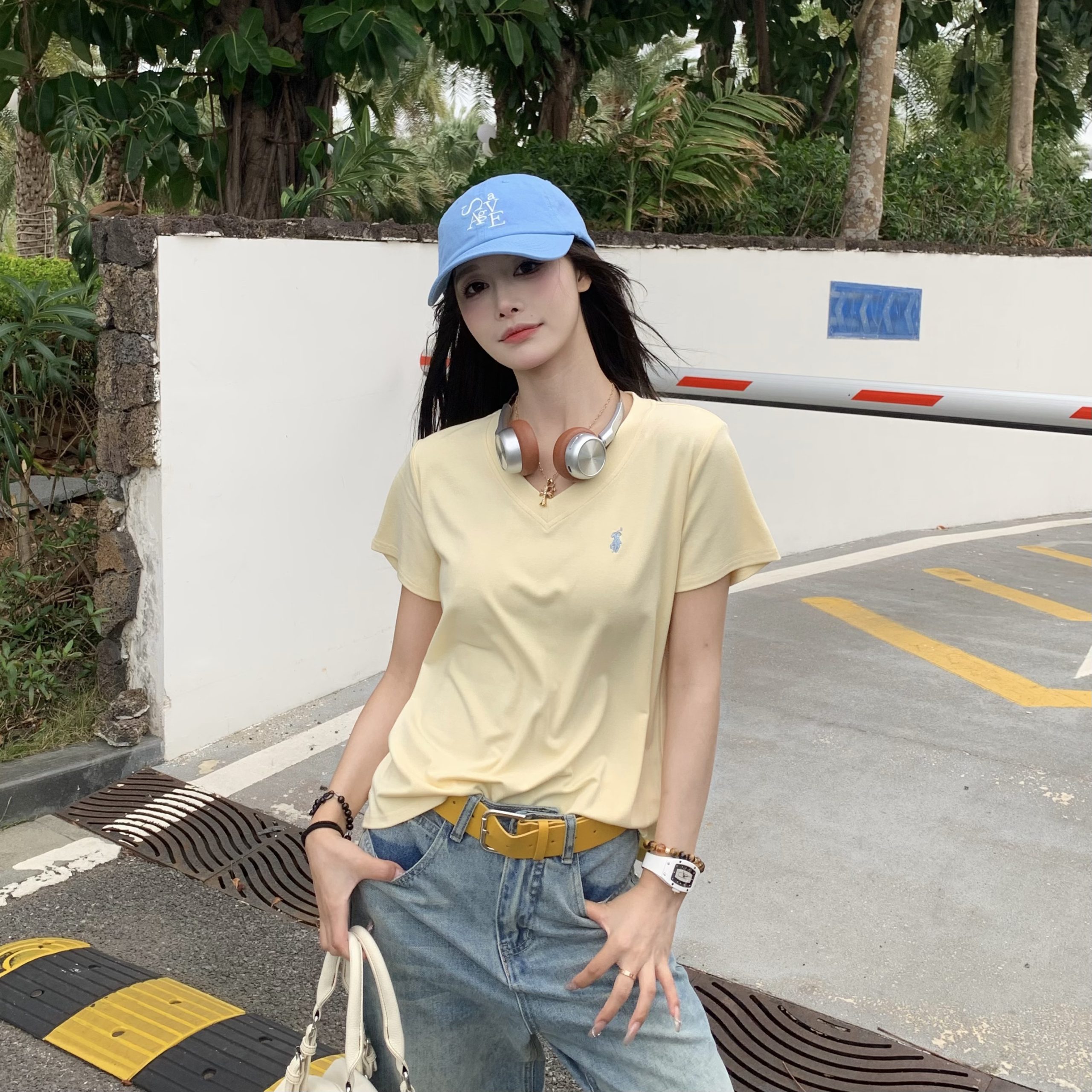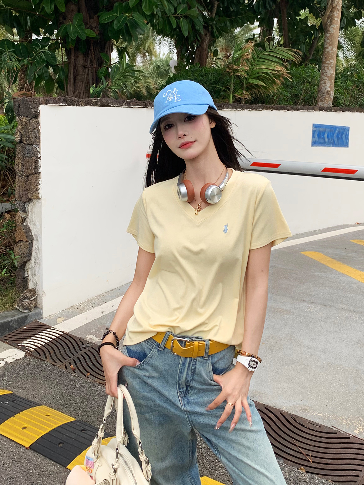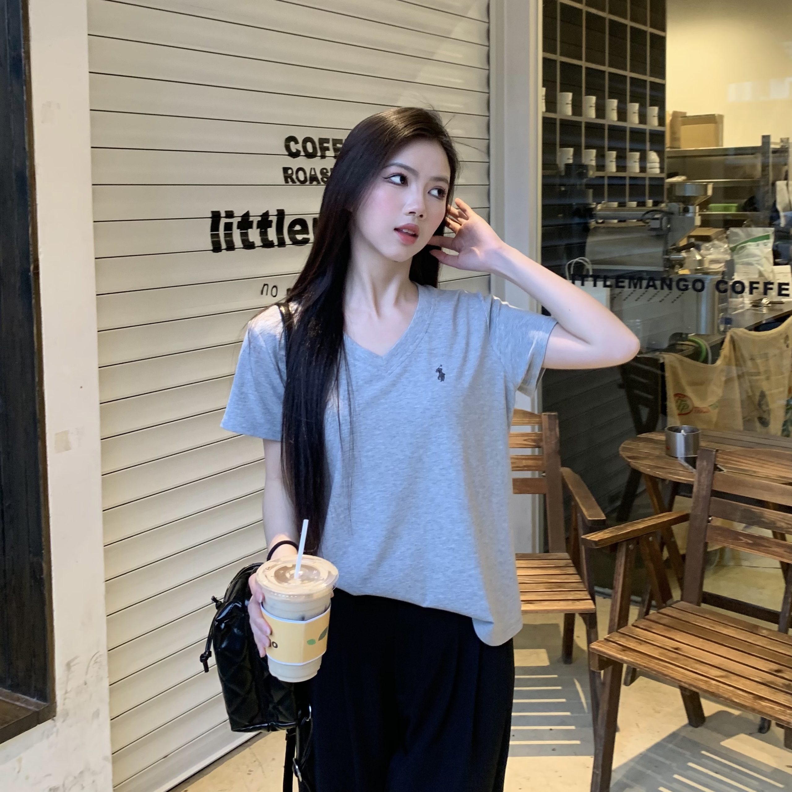 Embroidered V- Neck Short Sleeve T- Shirt Women Loose Casual – Outfit Ideas