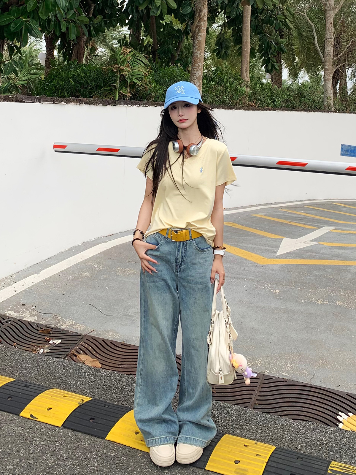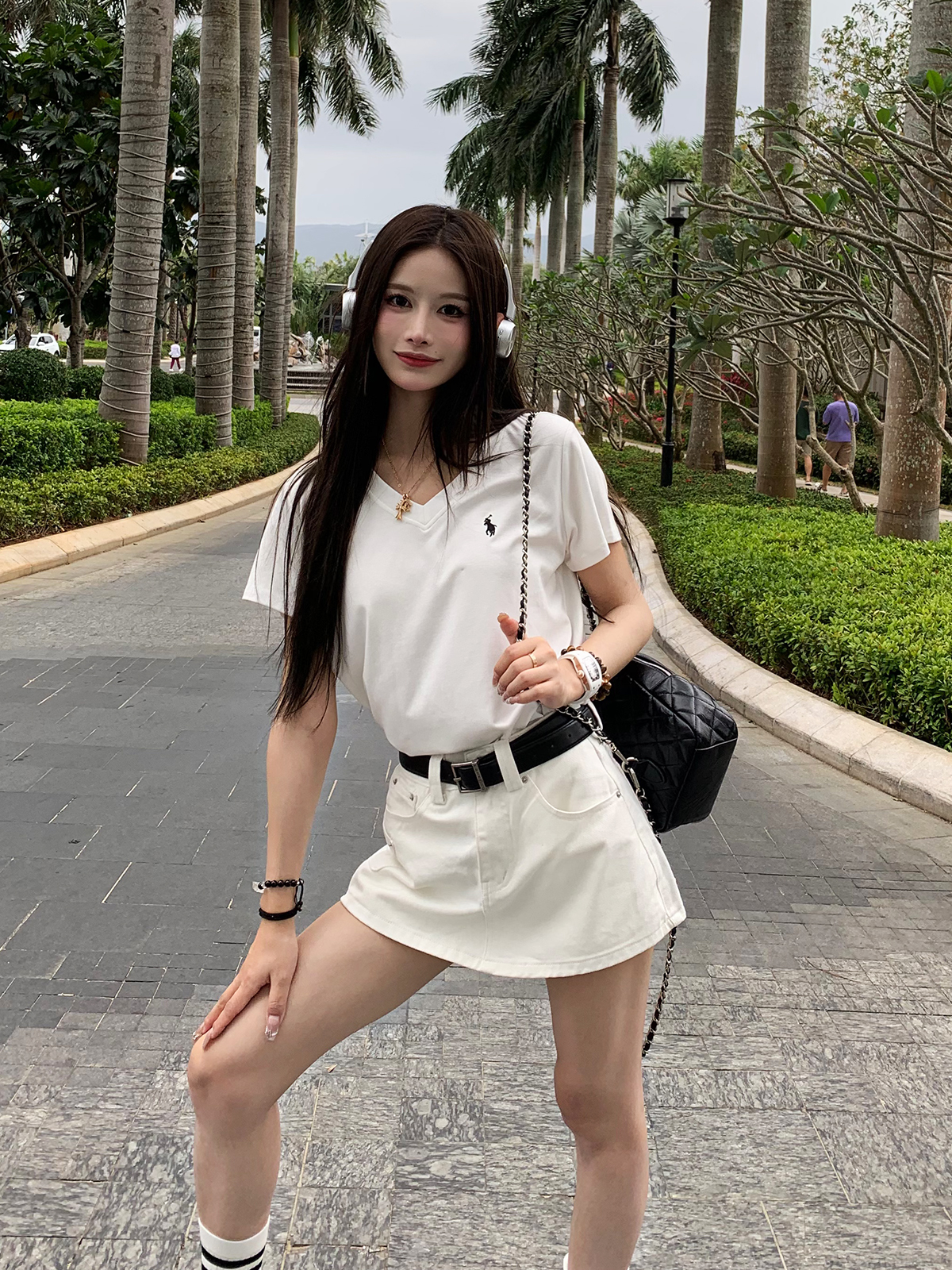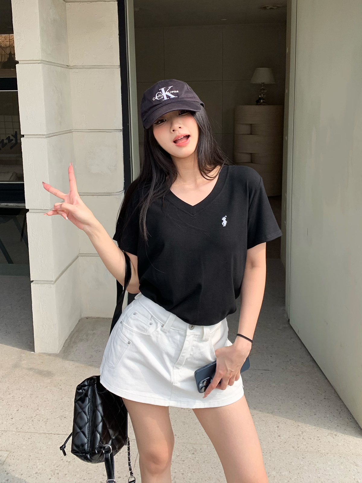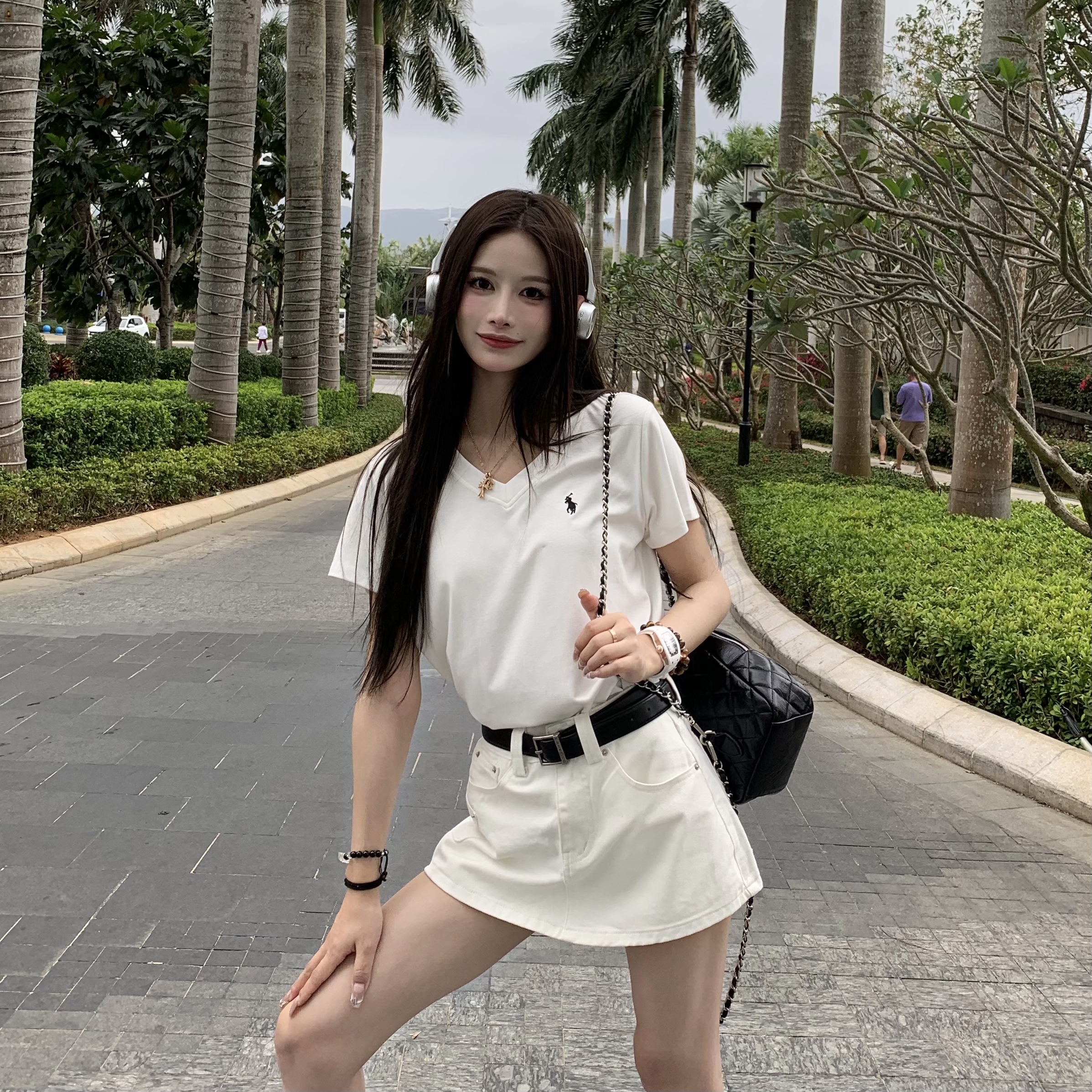 Embroidered V- Neck Short Sleeve T- Shirt Women Loose Casual – Outfit Ideas