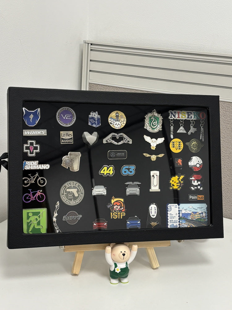 Enamel Pin Storage Display Box – Available in various sizes to meet different needs. Sealed and dustproof, it is resistant to oxidation and comes with a stand for both storage and display.