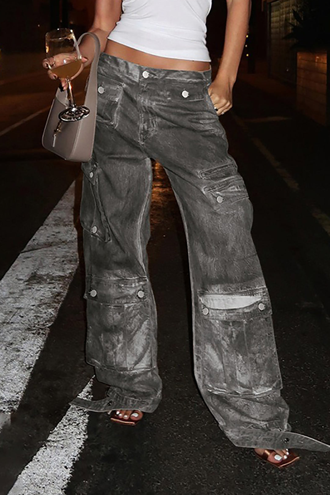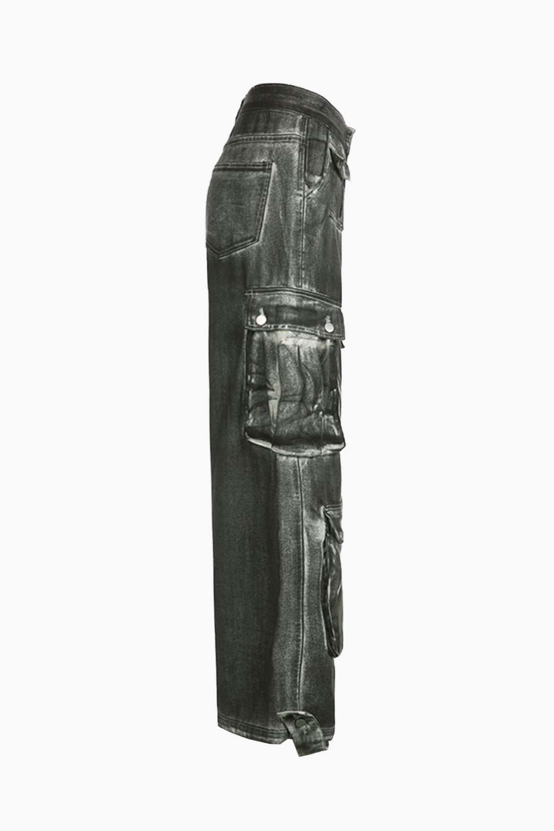 Faded Flap Pocket Straight Leg Cargo Jeans: Y2k Grunge Outfit Ideas
