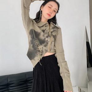 Fairy Grunge Lace Up Asymmetric Cardigan
