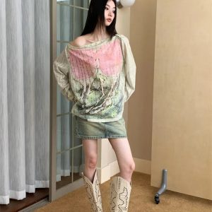 Add whimsical flair with this Fairycore one-shoulder top. The layered pastel print and relaxed drape bring a dreamy look to daily outfits or special gatherings.