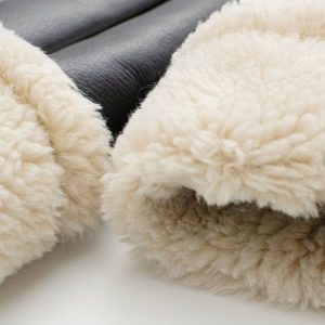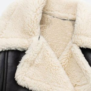 - Fold-over fur collar and cuffs