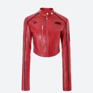 Ignite your wardrobe with the Biker Faux Leather Crop Jacket in striking red. Crafted to stand out, its edgy design brings a rebellious touch to any outfit, whether you’re out on the town or embracing bold streetwear.