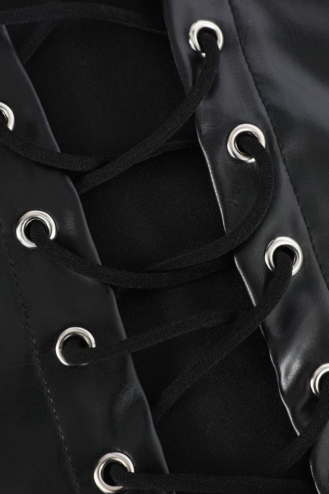 Faux Leather Halter Lace Up Top Y2K, Grunge Outfits High-quality product featuring prom dresses, spring outfits, business casual outfits and more. Modern design that fits the latest trends. Premium materials ensure durability and comfort. Order now for special offers! Product designed with attention to every detail. Suitable for all occasions and personal styles.