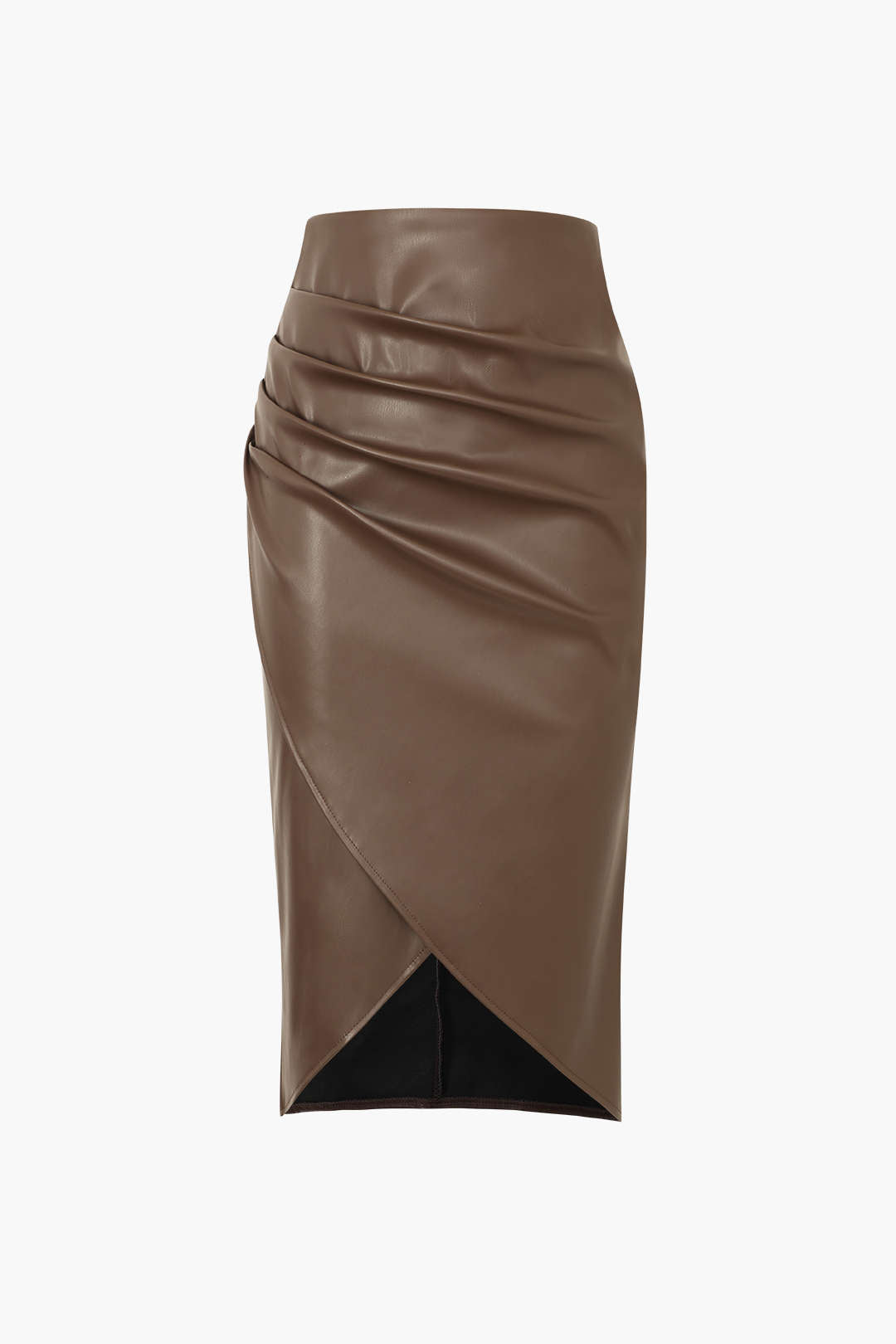 Faux Leather Ruched Midi Skirt Y2K, Coquette Outfits High-quality product featuring prom dresses, spring outfits, business casual outfits and more. Modern design that fits the latest trends. Premium materials ensure durability and comfort. Order now for special offers! Product designed with attention to every detail. Suitable for all occasions and personal styles.