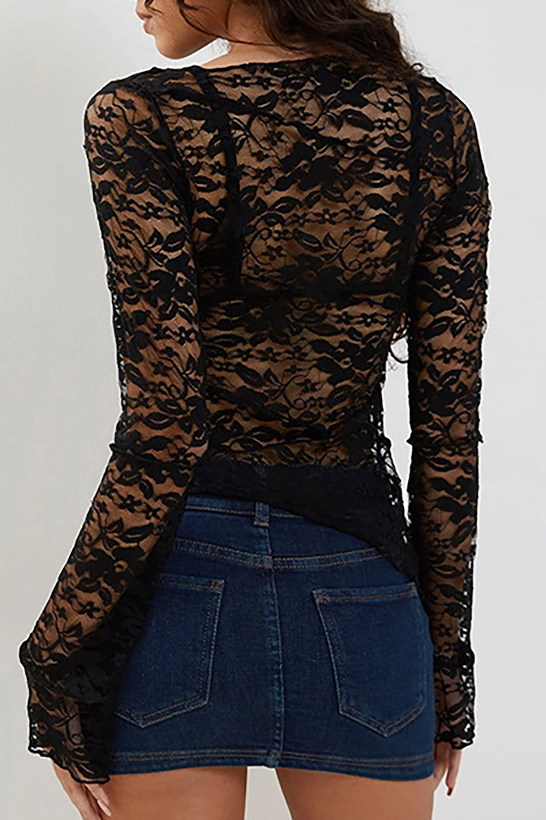 Floral Lace Sheer Asymmetric Long Sleeve Top: Y2k Outfit Ideas