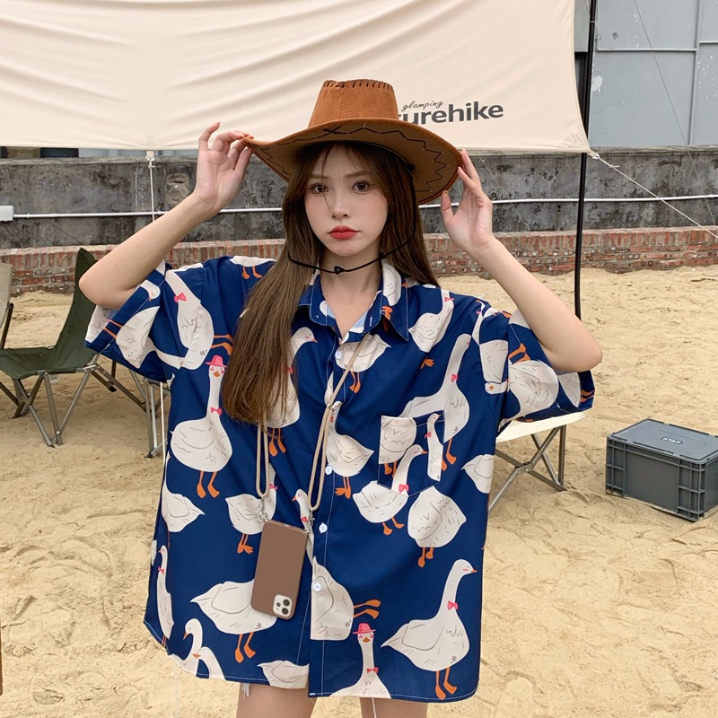 Floral Short Sleeve Beach Shirt Women Loose Printed Summer B – Outfit Ideas