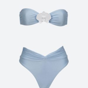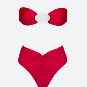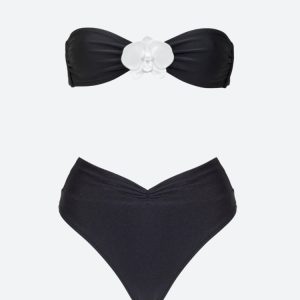 Soft glam for your next beach escape. This strapless bikini set features a flirty orchid flower detail and a flattering high-waisted silhouette. Minimalist, romantic, and sun-soaked ready.