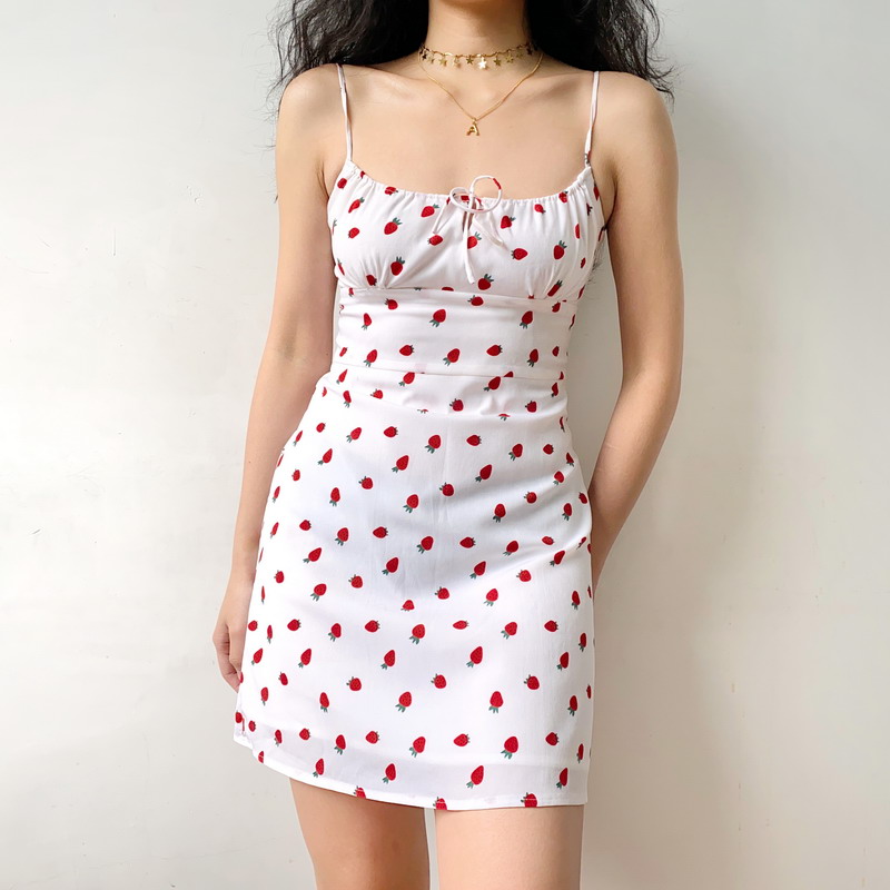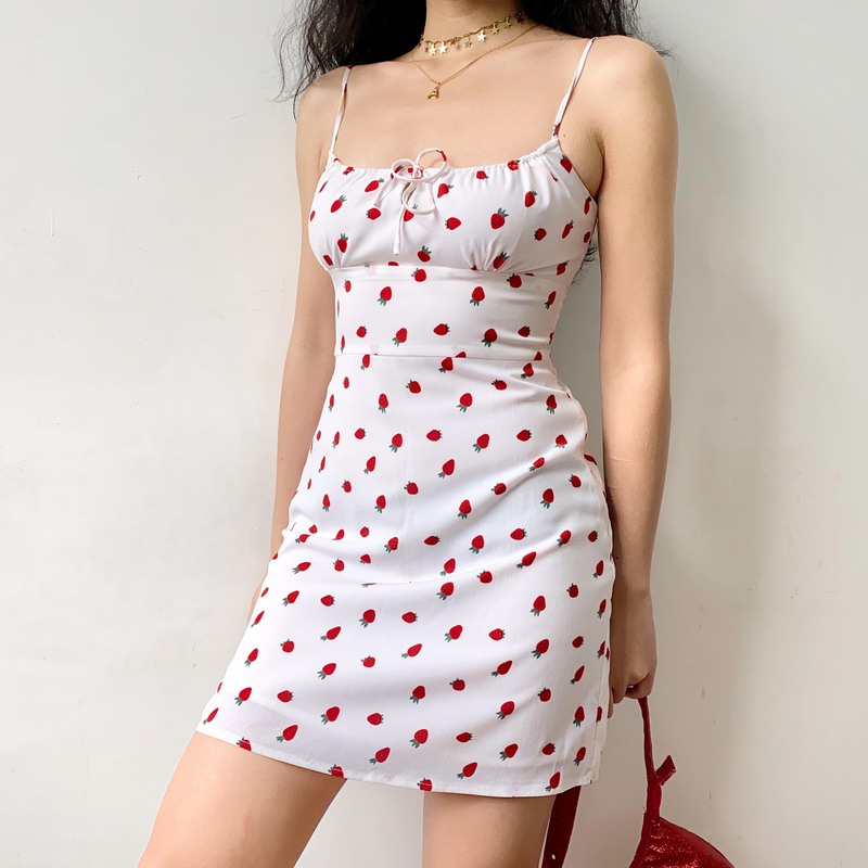 Embrace the essence of summer with our French Strawberry Print Front Tie Double Layer A-Line Camisole Dress, designed for the stylish trendsetter. This sexy DIY fashion piece features a flattering A-line silhouette that gently falls from the waist, while the playful front tie adds a touch of flirtation to your look. Perfect for warm days and evening outings, this dress is a versatile addition to your wardrobe. Elevate your summer style and make a statement—add this chic dress to your cart today!