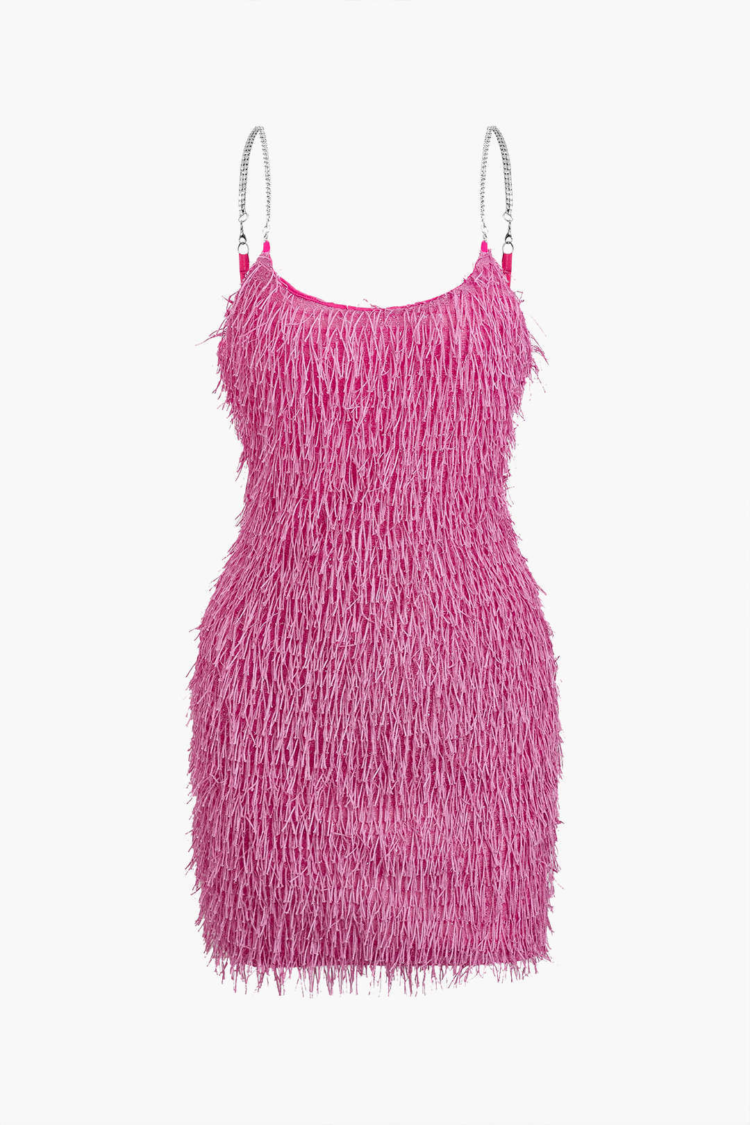 Fringe Texture Chain Slip Mini Dress: Y2k Party Outfit Ideas for Nights