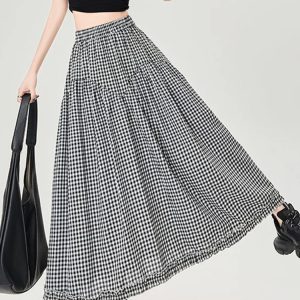 Gingham Tiered Midi Skirt is designed with a flowing silhouette that creates natural movement while walking. The gingham pattern adds a structured visual rhythm, and the tiered construction gives volume without feeling heavy. Its midi length makes it easy to style with fitted tops, knits, or layered outfits for everyday wear.