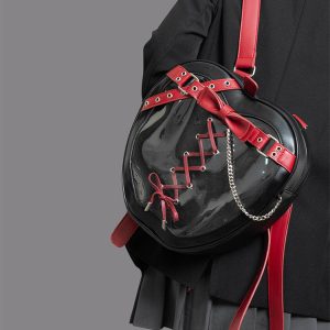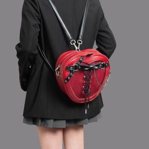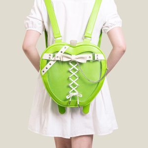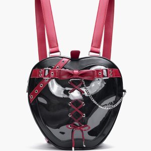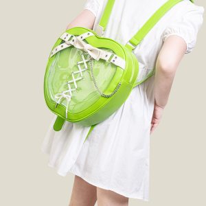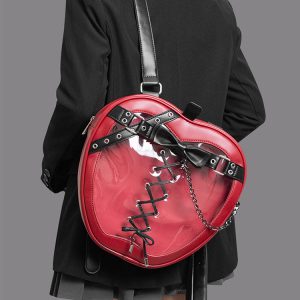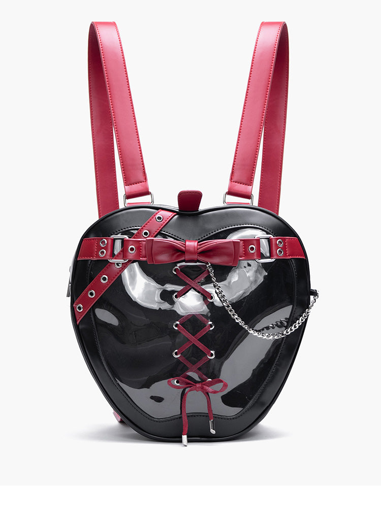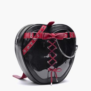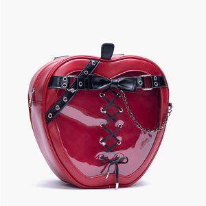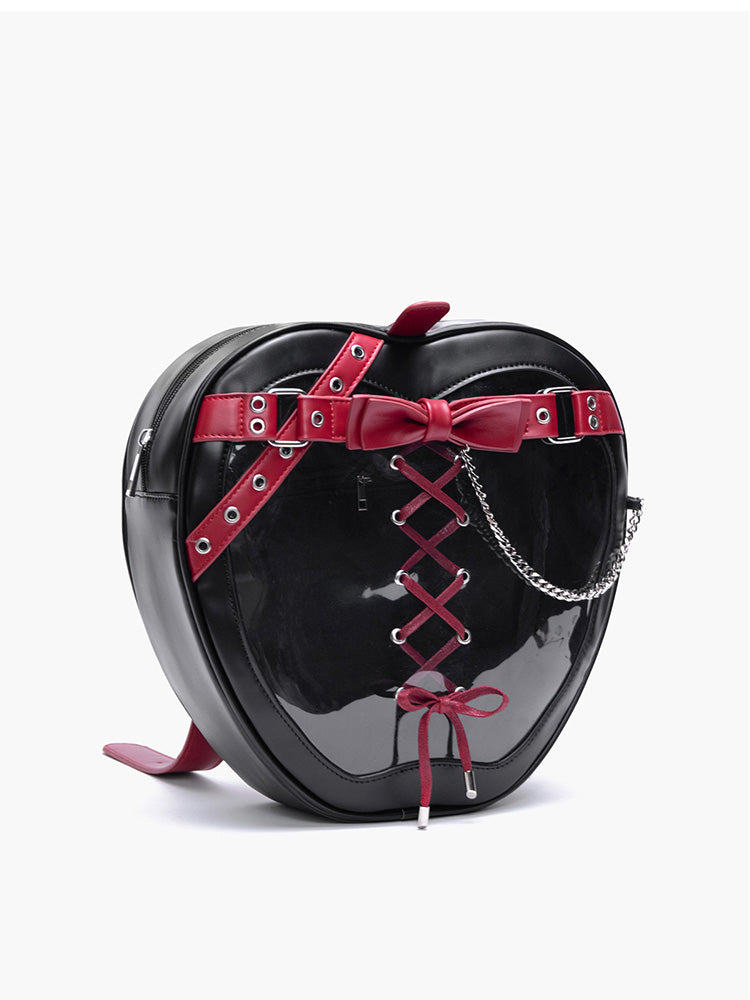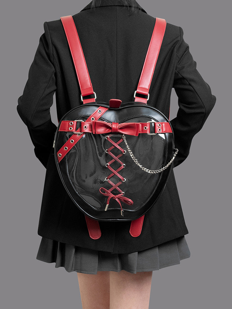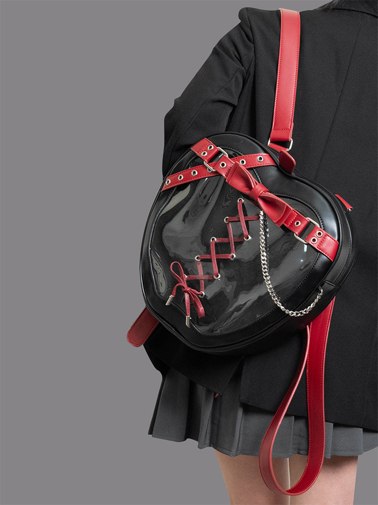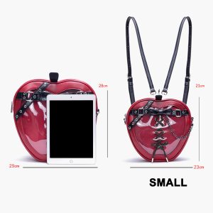 Gothic Style Apple-Shaped Ita Backpack – Unique Design with Belt and Chain Details